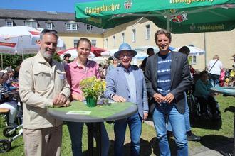 Werkstattleiter Andreas Stamm; Ortsvorsteherin Alexa Bach; Bürgermeister Jörg Haseneier und der Bundestagsabgeordnete Dr. Marlon Bröhr (v. l.)