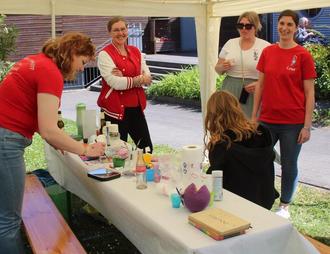 Bei einem bunten Rahmenprogramm gab es Leckeres vom Grill, gekühlte Getränke sowie Kaffee und Kuchen. Wer etwas über den Alltag der Rheinwerkstatt erfahren wollte, konnte dies im Rahmen von Werkstattführungen tun. Transparenz war hier das Motto. Und Musik war am Samstag Trumpf: Achim Köllen glänzte mit seinem Mega-Programm, der zweite Künstler an diesem Tag, Roman Neyer, heizte ebenso ein. Der Musikverein Baybachtal-Sevenich, zum ersten Mal musikalischer Gast beim Frühlingsfest, sorgte mit einem bunten Musikreigen bis zum Festende für Stimmung und gute Laune. Ein großer Dank ging an die Bälzer, die das Kinderschminken übernahmen.