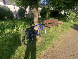 In der gleichen Nacht wurde ein blaues Fahrrad in den Dorfteich geworfen, das geborgen und an einem Baum abgestellt wurde.