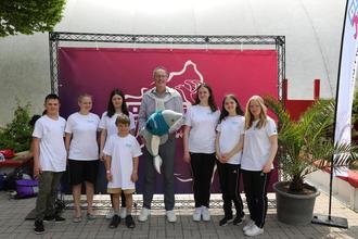 v.l.n.r.: Leon Leks (Betreuer), Eva Müntnich (Trainerin), Lina Jocoby, Anton Schröder, Michael Ebling (Ministerin des Inneren und für Sport), Anna Hofmann, Nila Grabowski und Alina Jussack