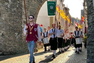 BAD SALZIG. Nach 3 Jahren Pause begleitete der Fanfarenzug in diesem Jahr den Baum der Bälzer Nachbarschaft wieder musikalisch auf ihren Festplatz.