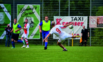 Holger Gaißmayer nimmt Maß, der gute Andreas Kensy kann nur zuschauen