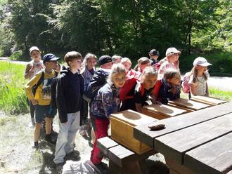 Am Donnerstag, dem 15.05.2025, fanden die Waldjugendspiele im Bopparder Wald statt. Dort trafen sich 14 Klassen, um die kniffligen und spaßigen Aufgaben rund um das Thema „Wald“ zu lösen und einen Preis zu gewinnen. Jedes Team bzw. jede Klasse hatte eine Försterin oder einen Förster und fast alle sogar einen Hund als Unterstützung dabei. Förster Max führte unsere Klasse 3c zu den verschiedenen Stationen im Wald. Die drei beliebtesten Spiele waren „1, 2 oder 3“, das „Wassertransportspiel“ und das „Fühlkistenspiel“. Beim „Wassertransportspiel“ ging es darum, so viel Wasser wie möglich von einem Eimer zu dem anderen mit einem Schwamm zu transportieren. Den einen Weg musste man im Slalom ablaufen, den anderen schnurstracks geradeaus. Zwischendurch machten wir Frühstückspausen. Als die Klassen zurückkamen, gab es kostenlos eine Wurst im Brötchen und Apfelschorle. Mmmh, das war lecker! Vielen Dank dafür! Wir mussten dann eine lange Wartezeit überstehen, bis endlich die Siegerehrung stattfinden konnte. In dieser langen Zeit spielten wir Spiele und erzählten uns Witze. Dann war es endlich so weit. Unsere Nachbarklasse 3a belegte den 1. Platz. Wir freuten uns sehr, dass die Grundschule Buchholz die beste Platzierung bei den Waldjugendspielen erreichte. Zum Schluss durften wir unseren Begleithund Hardy noch einmal ausgiebig streicheln. Das war ein toller Tag!