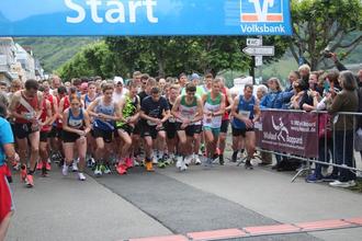 Hier merkt man eindeutig die gute Zusammenarbeit der TG Boppard mit den Schulen und Kindergärten. Der Applaus der begeisterten Zuschauermengen entlang der Laufstrecken ist der Dank an die Läuferinnen. Immer wieder angetrieben wurden die Sportlerinnen von einem bestens aufgelegten Moderator Basti Benner. Vor der Mammut-Leistung der TG Boppard in Sachen Mailauf-Organisation kann man nur den Hut ziehen; mehr als 100 Helferinnen waren ehrenamtlich im Dienst. Allein beim Fünf-Kilometer-Hauptlauf waren 400 Läuferinnen gemeldet. Sieger wurde der in Buchholz lebende und gebürtige Kieler Paul Wiesner (SSF Bonn Triathlon Team) in der Zeit von 15:14,70 Minuten, vor Simon Notte und Andreas Keil-Forneck. Schnellste Frau auf dieser Strecke war Pauline Solbach (Steuler TriKids RSG Montabaur) in 17:55,3 Minuten vor Marike Schneehagen und Lena Müller, beide von der LLG Hunsrück.