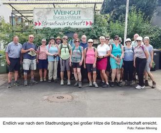 Als die Alte Synagoge als letzter Haltepunkt erreicht war, freuten sich die Wanderer auf die Einkehr in die benachbarte Straußwirtschaft. Bei einem Glas Wein und einer Stärkung aus der Winzerküche erfolgte ein reger Austausch über die vielfältigen Informationen, die auf dem Stadtrundweg besprochen wurden. Nach der ausgiebigen Rast schafften die Wanderfreunde den Heimweg nach Bad Salzig locker.