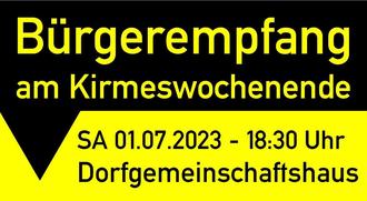 Bereits am Samstag (1. Juli) wird die Kirmes um 18:30 Uhr mit dem Bürgerempfang eröffnet. Ein kurzweiliger Bericht über die Arbeiten des Ortsvorstehers und des Ortsbeirates aus dem vergangenen Jahr und Informationen zu aktuellen Themen sollen die politischen Arbeiten transparent und verständlich machen.