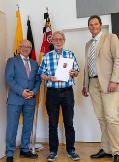 Stadt Boppard - Bürgermeister Jörg Haseneier (links) und der Direktor des Amtsgerichts St. Goar, Matthias Teriet (rechts), verabschiedeten Schiedsmann Karlheinz Scherer nach zehnjähriger Tätigkeit für den Schiedsamtsbezirk Boppard I.