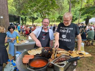 Die Abkühlungen waren auch bei noch heißeren Temperaturen am Grill nötig. Die Grillspezialisten Oli Holler und Bernd Schneider, die sich auf dem Gebiet Grillen als wahre Koryphäen bewegen, hatten sich in Zusammenarbeit mit dem Verein der Freunde und Förderer der Grundschule Bad Salzig e.V. einige Raffinessen ausgedacht, sie alle sorgten für wunderbare, kulinarische Genüsse.