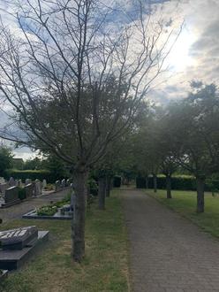 Zwei Kirschbäume, die schon lange abgestorben waren, sowie ein weiterer vertrockneter Baum wurden auf dem Friedhof entfernt. Ich hoffe, dass die Neubepflanzung im Herbst erfolgen kann.