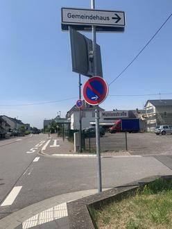 Das Hinweisschild „Gemeindehaus“ an der Brodenbacher Straße wurde zur besseren Sicht umgesetzt.