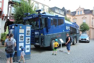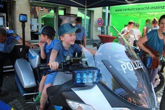 Die Polizei stellte neben dem Überschlags- und Motorradsimulator auch ihre Fahrzeuge, Polizeiboote und einen Wasserwerfer vor. So war es natürlich der Traum eines jeden Kindes, einmal im Polizei- oder Feuerwehrwagen zu sitzen, und das natürlich bei Blaulicht und Sirene.