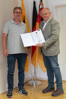Als Anerkennung für seine 25-jährige Tätigkeit überreichte der Erste Beigeordnete dem Jubilar eine Urkunde der Stadt Boppard.