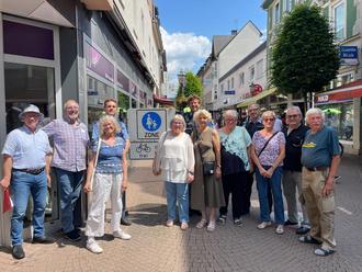 Boppards Bürgermeister Jörg Haseneier (links) war gemeinsam mit Vertretern von Polizei und Ordnungsamt und Vertreterinnen und Vertretern des Seniorenbeirats mit ihrer Vorsitzenden Beate Kaster-Schubert (5. von links) in der Kernstadt in Boppard unterwegs, um Gefahrenstellen für ältere Menschen zu begutachten.