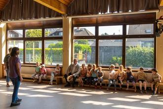 Nach dem Frühstück führten die Kinder den Bürgermeister durch ihre Einrichtung. In der Turnhalle trugen sie ihr aktuelles Hauptanliegen vor: Die Halle sei im Sommer durch die großen Fensterflächen kaum nutzbar, da sie sich stark aufheize. Im Winter hingegen sei sie eiskalt. Grund dafür sind die undichten Isolierglasfenster aus dem Jahr 1980 und das in Teilen undichte Dach. „Diese Missstände müssen dringend angepackt werden. Das ist keine Kür, sondern ein Muss“, erklärte der Bürgermeister. „Ich nehme das Anliegen mit – es ist wichtig, dass unsere Kitas Orte bleiben, an denen sich Kinder wohl und sicher fühlen.“
