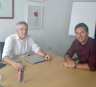 Der CDU-Landtagsabgeordnete Tobias Vogt (rechts) informierte sich bei Rolf Dreier über das „CoWorking Space“ in Bad Salzig.