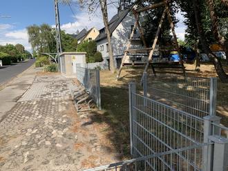 Im Rahmen der Maßnahme vergrößerte sich auch der Fahrradabstellplatz und ein direkter Zugang zum Spielplatz konnte hergestellt werden. Nun soll vom Bauhof noch eine Haltestange für Fahrräder aufgebaut werden. Das Umsetzen des Sandkastens an einen schattigeren Platz konnte noch nicht erfolgen, da der derzeitige Sandkasten im unteren Bereich morsch ist. Der Ortsbeirat hat beschlossen einen neuen 3 x 3 Meter großen Kasten zu beschaffen und an einer schattigen Stelle zwischen den Bäumen aufzustellen.