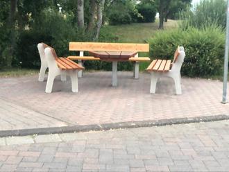 Es freut mich Ihnen mitteilen zu können, dass die entwendeten Bänke der Sitzgruppe am Kreisel in der Pastor-Wiegand-Straße durch eine neue