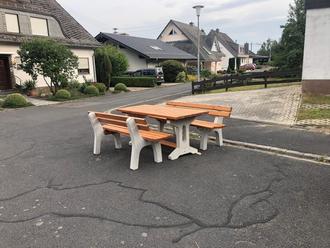 Leider haben sich bis jetzt keine Hinweise auf die Identität der Diebe ergeben. Es wurde auch die vom Ortsbeirat beschlossene Sitzgarnitur für den Wendeplatz In den Wiesen beschafft und in Zusammenarbeit mit den Anwohnern aufgestellt..