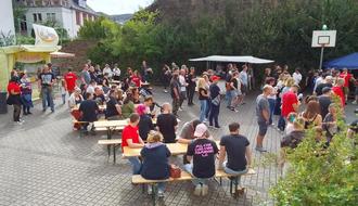 250 Menschen füllten den Innenhof der JugendBegegnungsStätte (JBS) St. Michael. Für das leibliche Wohl sorgten ein Falafel- und ein Kaffeestand. Vom Team Konzerte wurden Kaltgetränke, sowie Pommes, Bratwurst und Steak preisgünstig angeboten. Das Ambiente des Innenhofs schuf eine angenehme Atmosphäre und AS Eventtechnik sorgte für einen satten Sound.