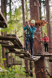 Sportlich aktiv in luftigen Höhen: In den Kletterwäldern Sayn und Vulkanpark erhalten Inhaber der Bopparder GästeKarte nach Vorlage 3 Euro Rabatt – und können noch bis zu drei weitere Personen auf ihre GästeKarte mitnehmen.