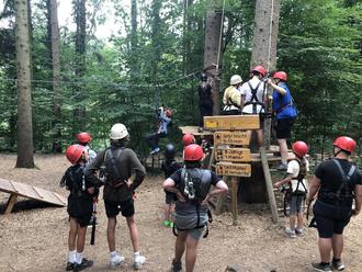 So startete die Woche mit einem Besuch des Tolli Parks in Mayen, der mit seinen Wasserelementen für Abkühlung sorgte, und jeden wieder Kind sein ließ. Hoch hinaus ging es am Mittwoch, da die Gruppe den Kletterwald Sayn unsicher machte. Im Vorfeld hatten die Veranstalter ein pädagogisches Programm mitgebucht, das durch verschiedene teambildende Elemente die Gruppe zusammenschweißte und auf die Herausforderungen in luftiger Höhe vorbereitete.