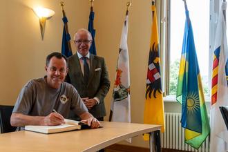 Stadt Boppard - Der Bürgermeister von Arroio do Meio, Danilo José Bruxel (links), trägt sich im Beisein von Boppards Bürgermeister Jörg Haseneier ins Goldene Buch der Stadt Boppard ein.