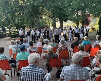 Viele waren dieser Einladung an diesem herrlich warmen Sommerabend gefolgt und so mussten schon vor Beginn des Konzertes Stühle nachgestellt werden.