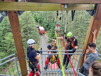 Abseilen vom Aussichtsturm „Fünfseenblick“, angeleitet von der Höhenrettungsgruppe der Feuerwehr Boppard, stand auch mit auf dem Programm.