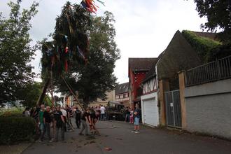 Am frühen Abend dann das Abholen des Kirmesbaums an der Talstation der Sesselbahn, unter den Klängen der Feuerwehrkapelle Bad Salzig. Gemeinsam ging es zum Wahrzeichen der Nachbarschaft, der Niedersburger Linde, wo das Aufstellen des Baumes stattfand. Nach getaner und gelungener Arbeit ging das Kirmestreiben mit der Band "Five Seasons" auf dem Kirmesplatz weiter.