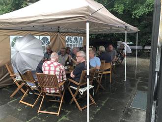 Beim Weinlaubenfest am 14. Juli in der Evangelischen Kapelle in Bad Salzig zeigte sich der Wettergott von zwei Seiten. Zu Beginn um 17:00 Uhr strahlte die Sonne mit voller Kraft, sodass die Gäste vorrangig die Außenbestuhlung nutzten. Das von dem Team der Genießerstube vorsorglich aufgestellte Zelt spendete zu diesem Zeitpunkt etwas Schatten. Gegen Hälfte des Festes um ca. 19:00 Uhr öffnete der Himmel seine Schleusen. Fast sintflutartig prasselte der Regen eine knappe halbe Stunde vom Himmel. Bis auf die Gäste unter dem Zelt flüchteten alle in die Evangelische Kapelle und nutzten dort die Innenbestuhlung. Die Kanalisierung auf dem Hüttenweg und vor der Kapelle konnte die Wassermassen nicht mehr kompensieren, sodass ein Teil des Vorplatzes voller Wasser stand. Als der Regen aufhörte und die Sonne wieder vom Himmel schien, fing das Team der Genießerstube an, den Vorplatz und die Außenbestuhlung zu säubern, auch wenn dies leider die Gemütlichkeit an diesem Abend etwas störte. Trotz der Wetterkapriolen an diesem Tag waren die zahlreichen Gäste guter Laune und freuen sich schon auf das nächste Weinlaubenfest, das am Montag, den 11. August stattfindet.