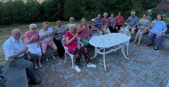 „Machen wir die Chorprobe heute Abend bei mir“, lud Ely Führ ihren Frohsinn zu sich ins Haus Trift ein. Das ließen sich die Sängerinnen und Sänger des Gemischten Chores Frohsinn nicht zwei Mal sagen. Nach dem gelungenen Kurkonzert vor einer Woche, war dies ein schöner Anlass, die gute Stimmung im Chor weiter zu pflegen. Tobias Querbach verfeinerte einzelne Lieder mit dem Chor und bereitete so das kommende Kurkonzert am 28. August in den Bopparder Rheinanlagen weiter vor. Erstmals auf dem Programm der Chorprobe überhaupt stand das St. Nikolaus Schifferlied von Peter Salzig, das am 3. September anlässlich der Einweihung des Peter-Salzig-Platzes am Schiffermast in Bad Salzig gemeinsam mit dem Kirchenchor St. Ägidius gesungen werden soll. Den Abend ließen die Sängerinnen und Sänger bei einem guten Glas Wein und Leckereien aus Elys Küche ausklingen. Weitere Termine sind: 9. September, gemütliches Beisammensein mit Betty Geis, 15. Oktober „feuchte Chorprobe“ im Weinbistro Sisterhenn in Boppard. Wer mitsingen möchte ist herzlich eingeladen! Chorprobe jeweils freitags, 19 Uhr im Feuerwehrgerätehaus in Bad Salzig.