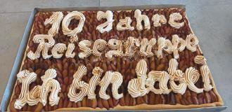 Anlässlich des 10-jährigen Bestehens hatte das Organisationsteam alle registrierten Reisenden zu einem gemütlichen Nachmittag in das Hotel Ebertor eingeladen. Einige der 100 angemeldeten Teilnehmer blieben witterungsbedingt zu Hause; trotzdem konnte Egon Gras für das Orgateam eine stattliche und frohe Runde begrüßen.