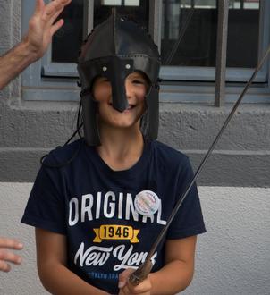 Danach ging es auf "Schatzsuche" zu den historischen Plätzen "Römerpark" und "Alte Burg". Im Römerpark fanden die Kleinen Räuber den "Pontifex Maximus des Kastells" und mussten mit Geschick und Pfiffigkeit eine Brücke bauen.