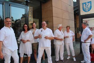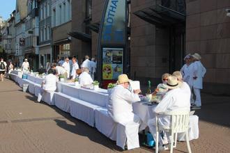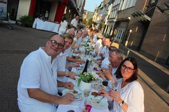 BOPPARD.(EF). Am vergangenen Samstagabend fand in der Bopparder Fußgängerzone die 2. Durchführung von „Dîner en blanc“ statt. Ein Traum in Weiß umsäumte die Fußgängerzone, angefangen auf der Höhe des Brunnens am Marktplatz. Als man um 18 Uhr in den weißen Abend und die wundervolle Nacht startete, hatten nur einige Gäste ihre Plätze eingenommen, es war einfach noch zu warm. Im Schatten der Stadthalle oder des Modehauses Stammer stand man zunächst bei einem leckeren Glas Wein oder Aperitif zusammen, bevor man zum Dinieren die Plätze einnahm. Die Teilnehmer, in weißer Leinentunika, weißer Stretchhose, weißem T-Shirt, weißer Jeans, weißem Hemd sowie in weißen Moccasins oder weißem Sportschuh, hatten kurz vorher mit gefüllten Picknickkörben den Weg in die Innenstadt gefunden. Gemeinsam verbrachte man mit Fremden, Freunden oder der Familie, einen Gourmetabend bei angenehmer Hintergrundmusik und leckeren Gaumenfreuden.