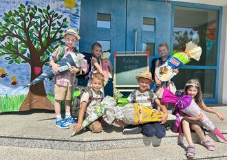 Der Tag begann mit einem Einschulungsgottesdienst, der sich rund um das Thema Freundschaft drehte. Anschließend hielt die Schulleiterin auf dem Schulhof eine Willkommensrede und von den Zweitklässlern wurde das wundervolle Theaterstück „Der Buchstabenbaum“ aufgeführt. Auf dem „Buchstabenbaum“ gab es viele Buchstaben, die die Kinder mit farbenfrohen Kostümen und Bewegung zu Wörtern und Sätzen formten. Ein Highlight des Stücks war das gemeinsame Tanzen zu einem Lied, bei dem die wichtigen Selbstlaute „A E I O U“ sogar schon am allerersten Tag geübt werden konnten. Zu diesem freudigen Ereignis waren Eltern, Geschwister, Omas, Opas und andere Angehörige dabei, die bestimmt genauso aufgeregt waren, wie die Kinder.