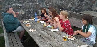Genauso hatten die Kinder und Jugendlichen auch Zeit für sich, um miteinander selbstgestaltete Zeit zu verbringen. Diverse Bastelangebote wie Brennbilder und Loombänder, aber auch Schach und Uno rundeten die Abende ab. Schön war auch, dass die Gruppe erst um 9.00 Uhr zum Frühstück da sein musste.