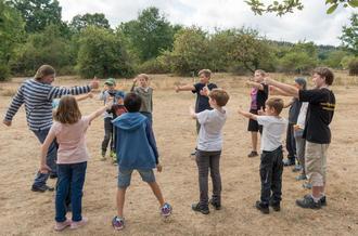 Harald Peinzke begeisterte die Kinder mit richtiger Theaterausbildung in Gestik, Mimik und Tanz. In der Waldlehrschule konnten die „Kleinen Räuber“ Tiere aus Wald und Flur aus nächster Nähe betrachten und streicheln. Astrid die Falknerin hatte zudem lebendige Eulen, einen kleinen Steinkauz und zwei Frettchen mitgebracht.
