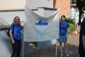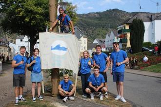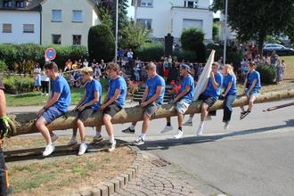 Einige Stunden später, fuhr man mit Baum, Trillerpfeife und Gesang, Richtung Heimatort. Hier angekommen, gab es eine kurze Verschnaufpause mit der dazu gehörenden Stärkung. Unter den Klängen des Fanfarenzuges Koblenz-Karthause 1964 e.V., wurden der herrlich geschmückte Baum und der diesjährige Kirmesjahrgang musikalisch auf den Theodor-Hoffmann-Platz geleitet. Die Koblenzer Musikfreunde, hatten den musikalischen Teil für den Fanfarenzug Bad Salzig übernommen, da der zeitgleich sein 70-jähriges Jubiläum feierte.