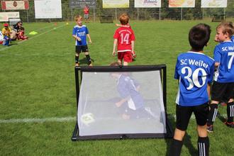Die Sparkasse lobte für jedes teilnehmende Kind einen Pokal aus, die jüngeren Geschwister konnten auf der Hüpfburg toben oder an Gewinnspielen teilnehmen. Für das leibliche Wohl und kühle Getränke für Groß und Klein, sorgte in gewohnt perfekter Manier der Gastgeber selbst, der VfR Salisso Bad Salzig. Längst hat sich über die Stadtgrenze hinaus rumgesprochen, dass die Salisso-Infrastruktur mit tollem Rasenplatz, modernem Vereinshaus und ausreichend Parkplätzen sich auch für höhere Aufgaben prädestiniert fühlt. Nicht umsonst gastierten in kurzen Abständen Mannschaften des 1. FC Köln, 1. FC Kaiserlautern, Hennef oder Dormagen auf dem grünen Geläuf.