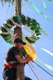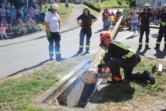 Letzte Sägearbeiten am Kirmesbaum