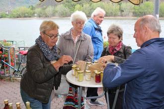Und der Zwiebelmarkt in Boppard hat Tradition, er geht bis ins späte Mittelalter zurück, als die Anbieter von Zwiebeln einer nahen Rheininsel ihre Zwiebelernte in Boppard verkauften. Mit Nachen und Kähnen wurde die Ernte damals nach Boppard gebracht. Heute sind zwar auch noch Zwiebel zu erwerben, doch gibt es auch eine Vielzahl anderer illustrer Dinge zu kaufen, so dass sich ein Besuch an diesen Tagen in Boppard lohnte. Buntes Treiben herrschte an den Verkaufsständen, die sich in der Rheinallee vor den großen Hotels und auf dem Marktplatz eingerichtet hatten.