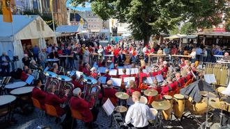 Das Mittelrheinische Jugendblasorchesters unter der Leitung von Olaf Bach (li.) sorgte für tolle Unterhaltung
