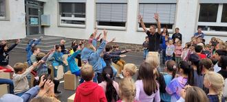 Die Begeisterung war förmlich greifbar. Alle klatschten mit und sorgten für eine unvergessliche Stimmung auf dem Pausenhof. Am Ende des Tages erhielt jedes Kind eine Karte von David Anlauff mit allen Infos rund um den Trommel-Unterricht.
