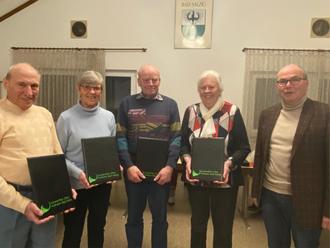 Das bevorstehende Vereinsjubiläum war Anlass, um Vereinsmitglieder für ihr jahrzehntelanges außerordentliches Engagement im Frohsinn zu ehren. Die Mitgliederversammlung ernannte Thea Börsch, Erni Breitbach, Gerd Breitbach und Walter Pulger zu Ehrenmitgliedern. „Ihr habt den Frohsinn zu einem Teil Eures Lebens gemacht“, so Höhlein.