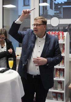 Stefan Dumont, Pastor der Katholischen Kirchengemeinde Mittelrhein St. Josef, segnete im Anschluss an die Grußworte die Bücherei. Hut ab davor, was die ehrenamtlich agierenden Menschen der Bad Salziger Bücherei St. Ägidius um Sabine Wieprecht und Elke Nick hier geleistet haben.