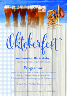 BAD SALZIG. Am Sonntag, 16. Oktober, lädt die Evangelische Kirchengemeinde Boppard zum Oktoberfest in die Kapelle ein.