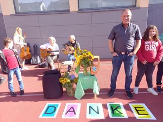 Jede Klasse überreichte Herrn Borsch eine persönlich gestaltete Dankeschön- Sonnenblume. Mit viel Applaus und mehreren Raketen dankten ihm alle lautstark für diese großzügige und tolle Unterstützung.