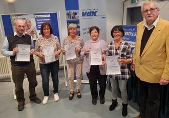 Ehrung 20-jährige Mitgliedschaft (v.l.n.r.): Friedhelm Graß, Josefine Pulger, Ingrid Bock, Ursula Dausner, Marianne Betzing, Karl Josef Mahlberg