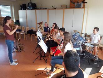 Die Kinder durften neben der Tuba, der Posaune, dem Saxophon, der Klarinette, der Querflöte, der Trompete und dem Waldhorn auch das Schlagzeug ausprobieren. So wurde die Neugierde und das Interesse der Kinder geweckt, um vielleicht bald auch ein Instrument zu erlernen.