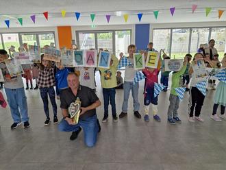 In diesem Jahr hatte sich die Schule etwas Besonderes als Dankeschön einfallen lassen. Die selbstgebastelte Dankesgirlande mit vielen Fotos sollte beim Oktoberfest des Supermarktes am folgenden Wochenende zur passenden Dekoration beitragen. Mit viel Applaus dankte die Schulgemeinschaft Sascha Borsch lautstark für diese großzügige und tolle Unterstützung.